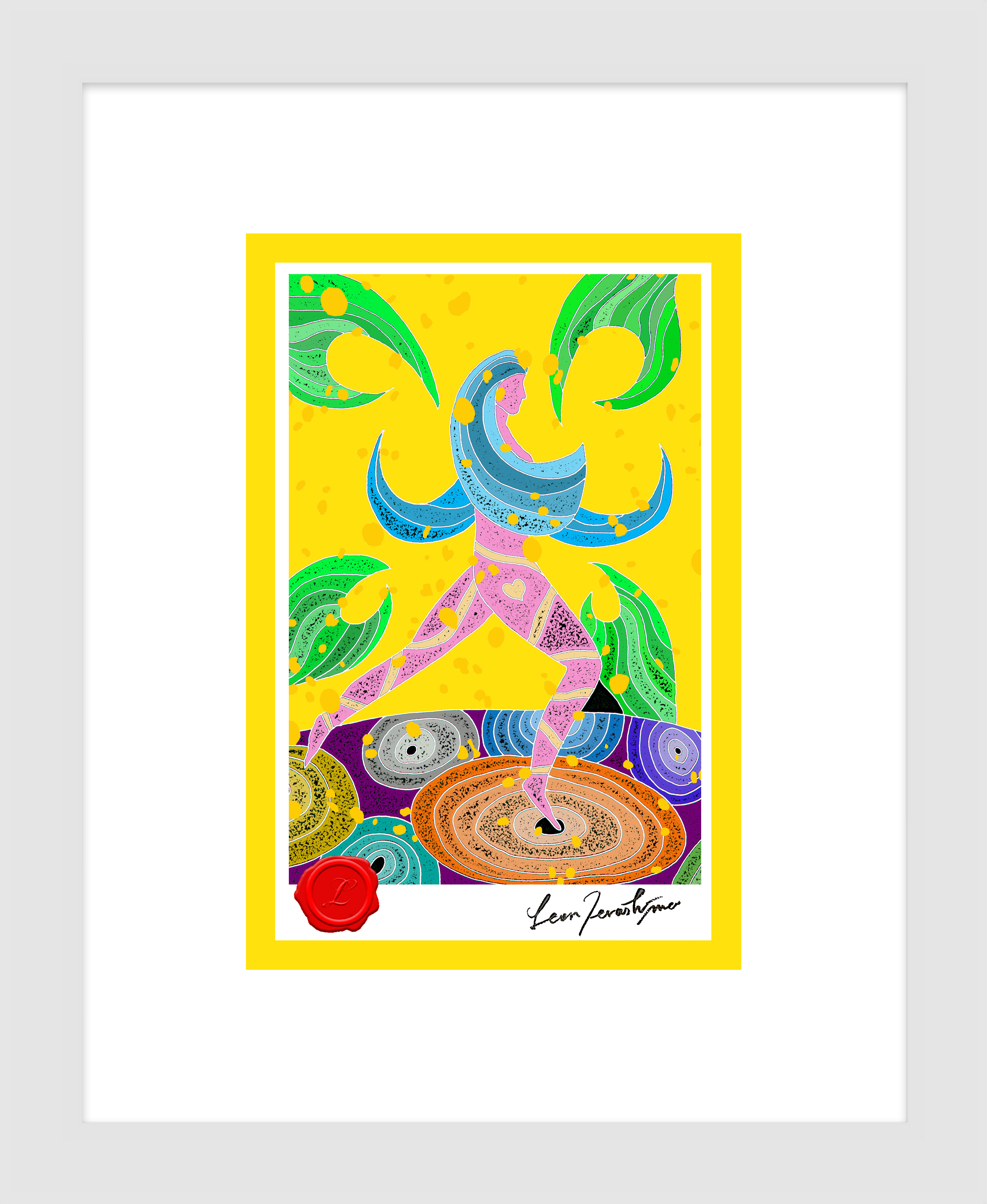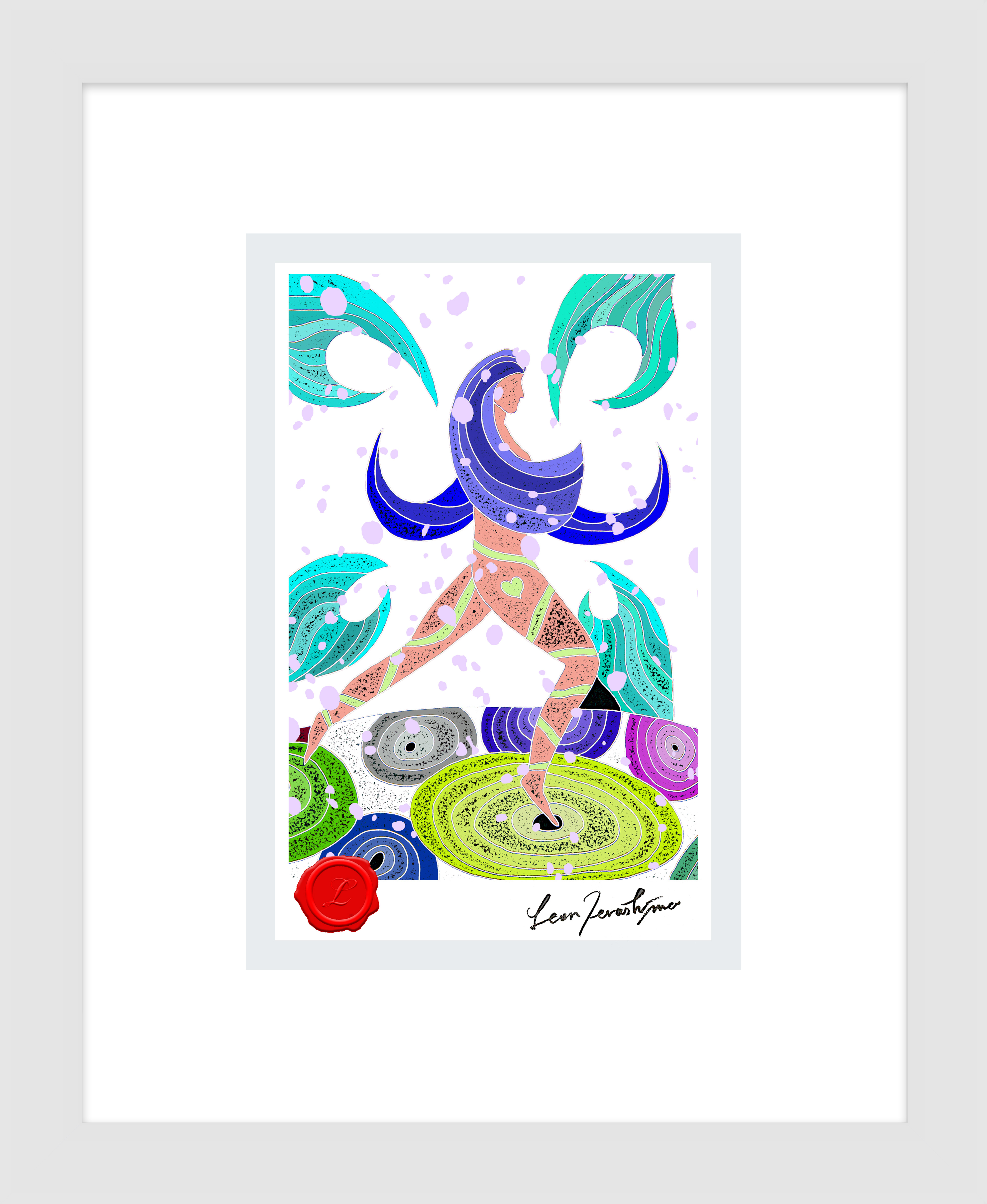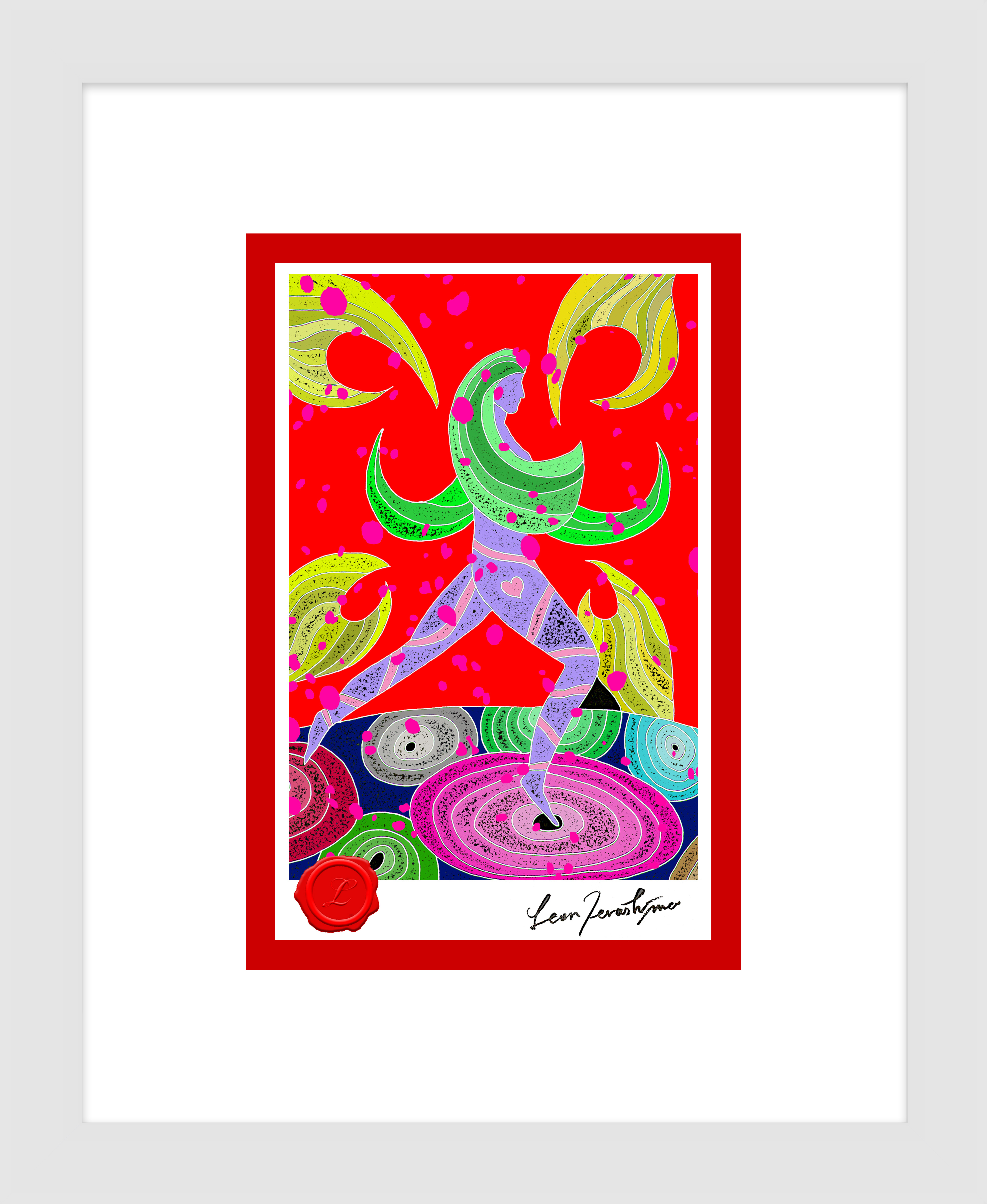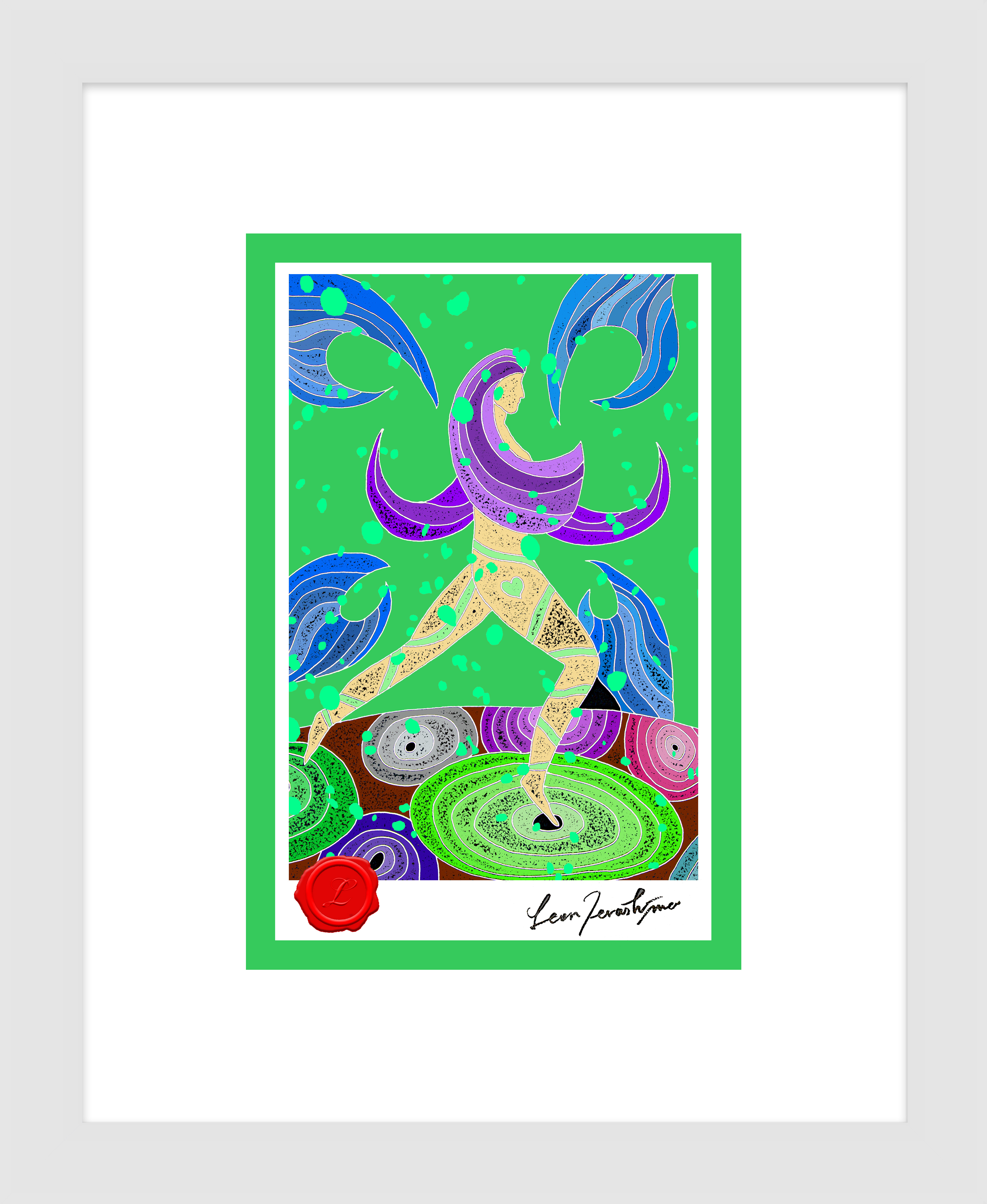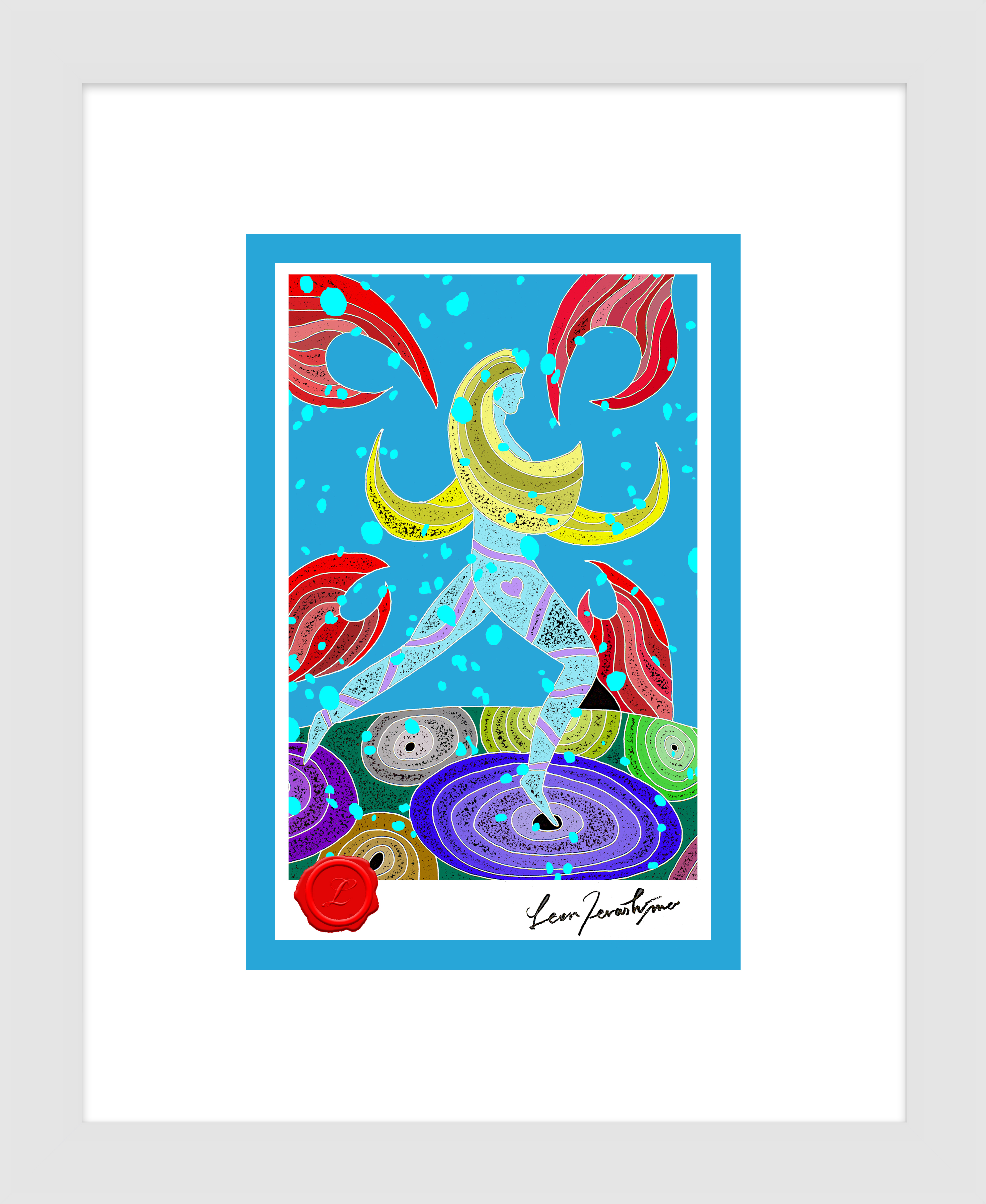 絵柄部分のサイズ / 100mm-148mm (ポストカードサイズ)・額装時の外寸 / 約250mm-300mm・ハンドメイドによる木製額・シーリングワックス(赤)・直筆サイン入り